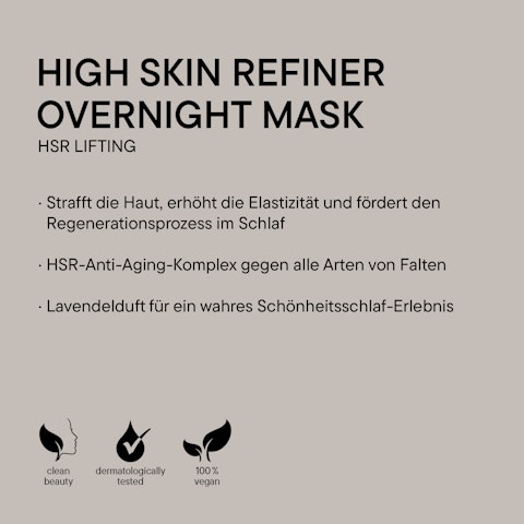 Der bewährte HSR lifting overnight Komplex entfesselt das volle Regenerationspotential der Haut und sorgt neben einer all-umfassenden Anti-Falten Wirkung für eine strahlende, frische und jung aussehende Haut am nächsten Morgen.